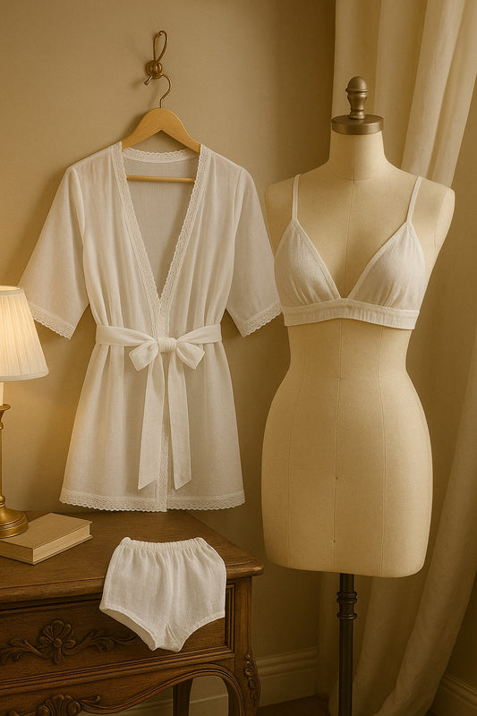 3-Piece Cotton Loungewear Set – Robe, Bralette & Shorts | Breathable & Elegant