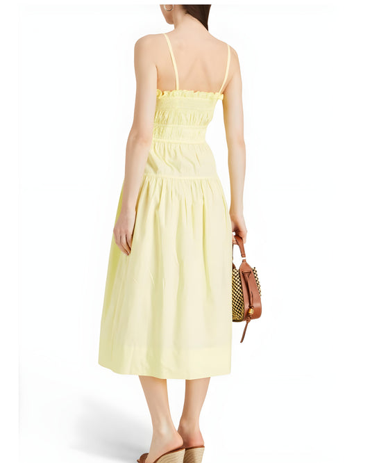 Smocked-Bodice Cotton Midi Dress – Effortless Elegance for Every Occasion