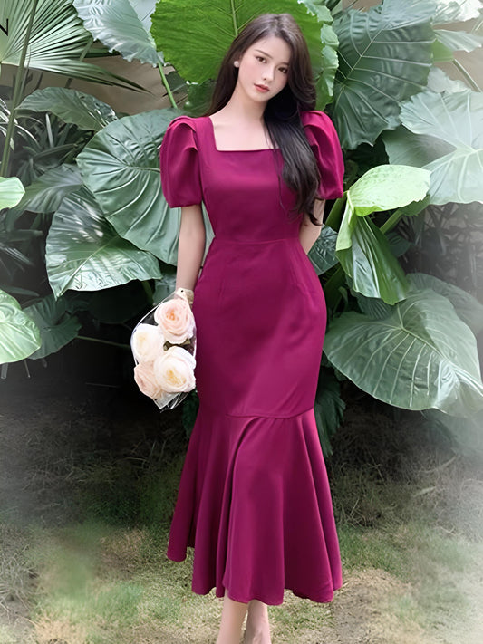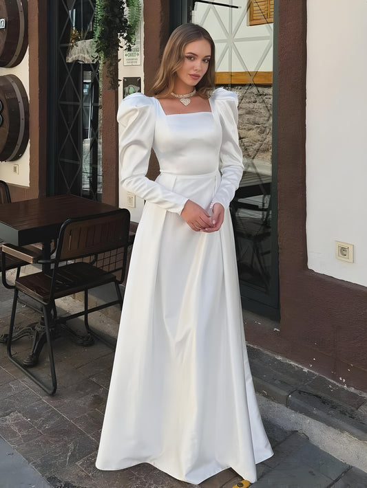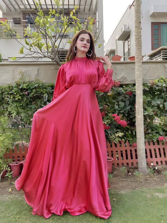 Silky Royal Gown with Puff Sleeves