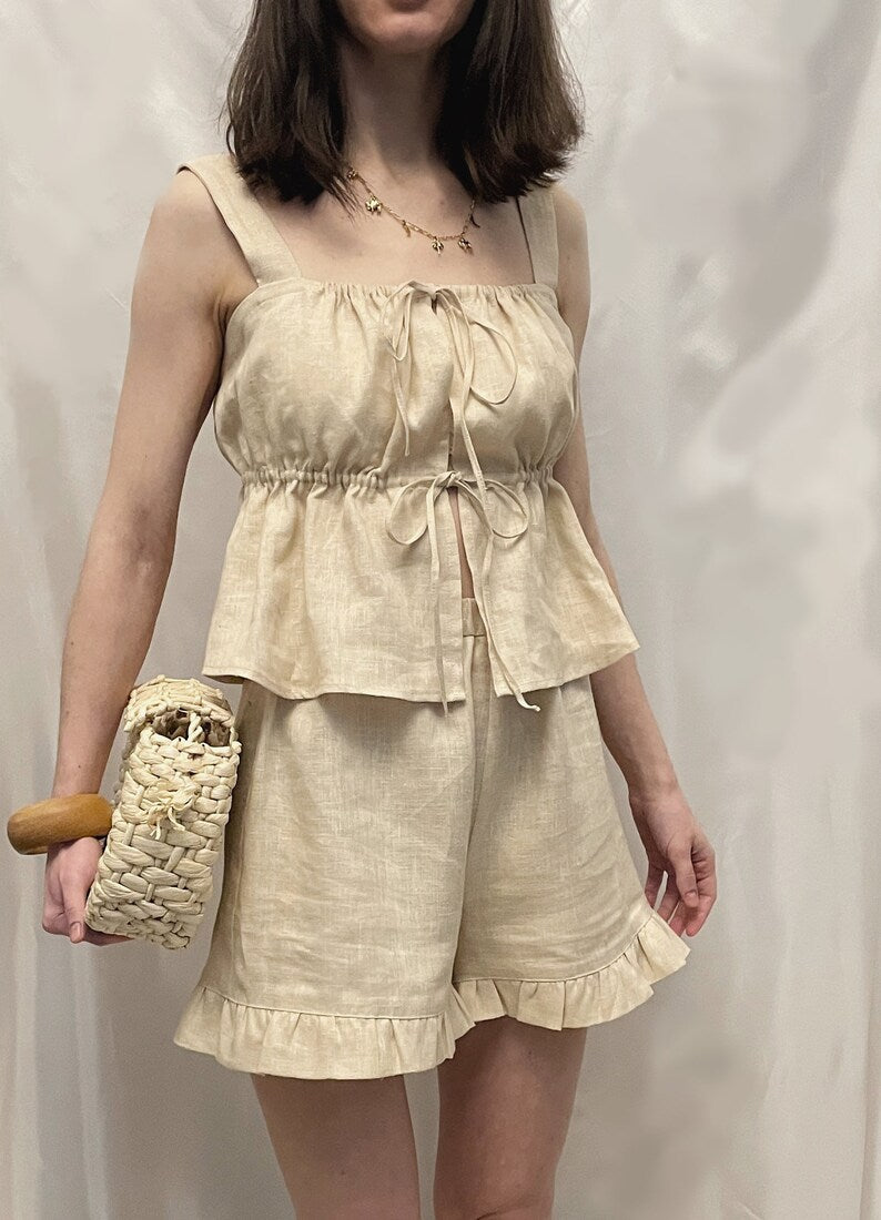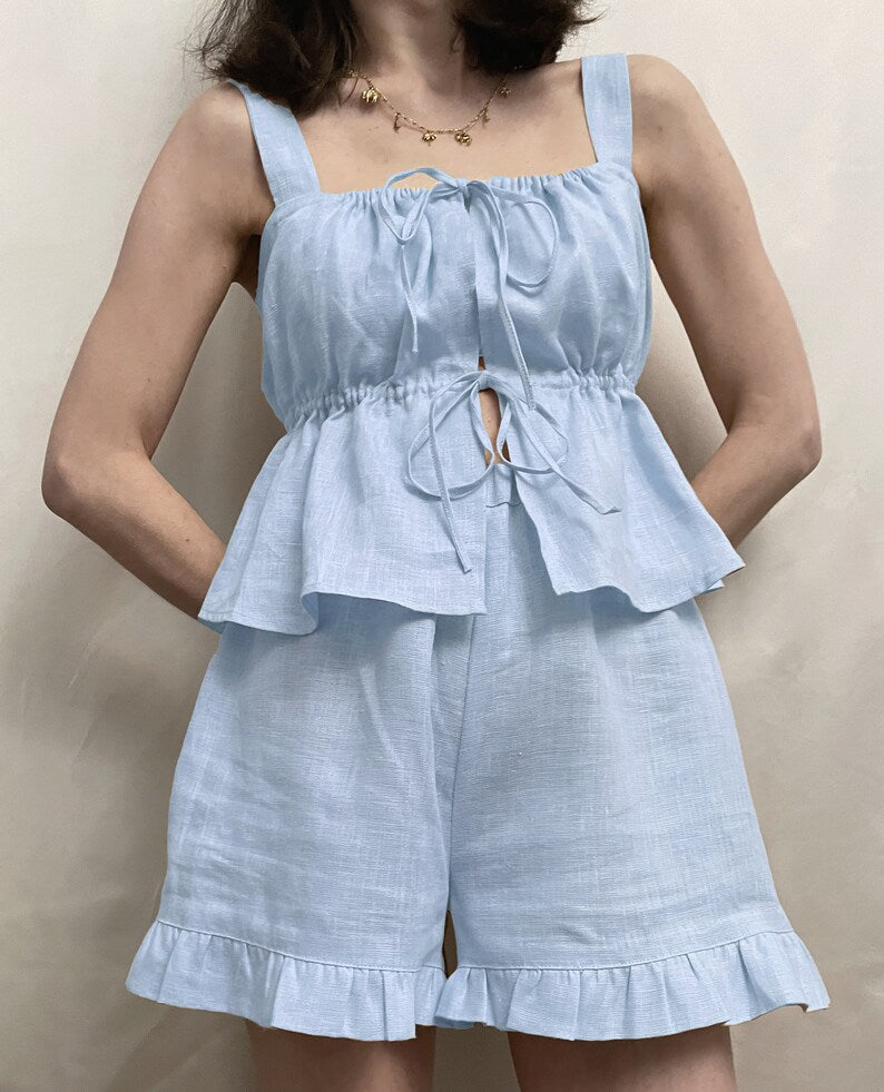 (30%) OFF - Cotton Ruffle Peplum Top and Shorts Set
