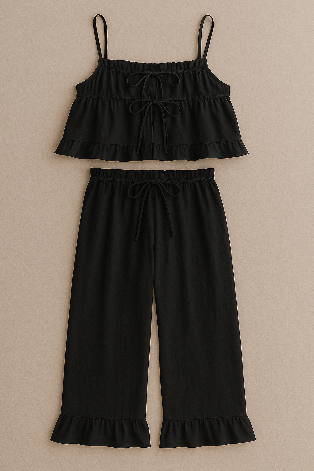 (30%) OFF - Frill Trim Cotton Cami Set – Sleeveless Top & Ruffle Hem Pants